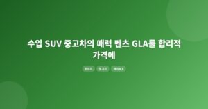 수입차 가격 하락으로 중고차 시장에서 벤츠 GLA를 합리적 가격에 구매할 수 있어요. 세이프 6 보증 프로그램으로 초기 수리 부담도 줄일 수 있거든요.