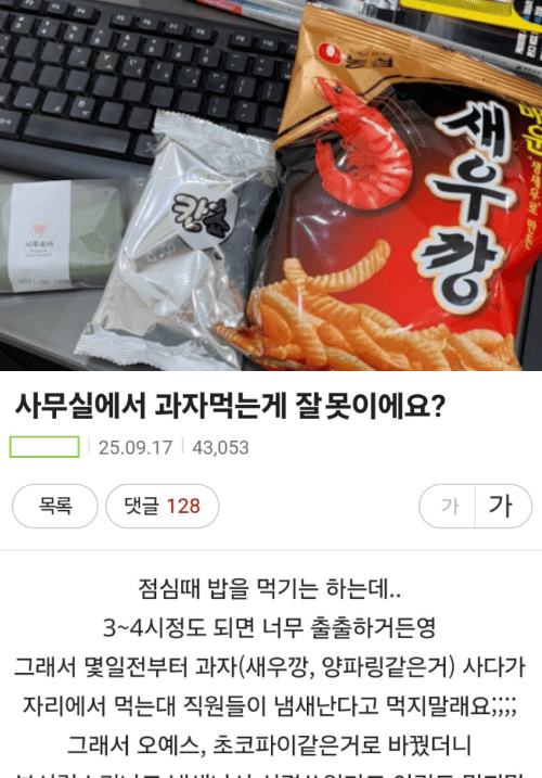 사무실에서 일하면서 과자먹는게 잘못인가요?