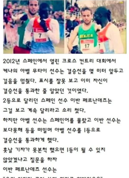 마라톤 선수가 마지막에 1위를 포기한 이유..