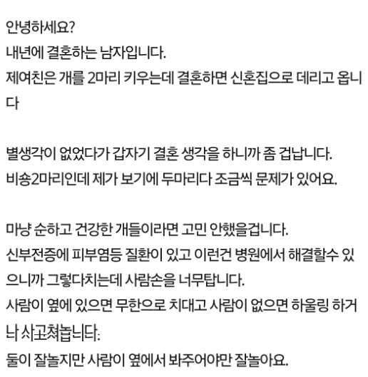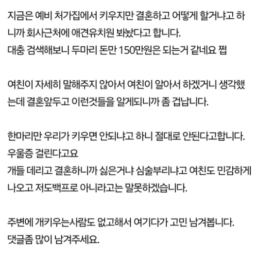 강아지 키우는 여자친구와 결혼이 걱정입니다..