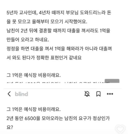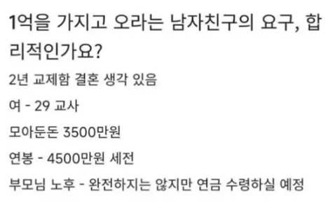결혼할꺼면 1억 모아오라는 남친..