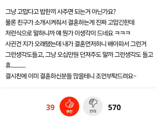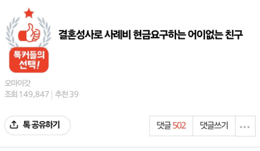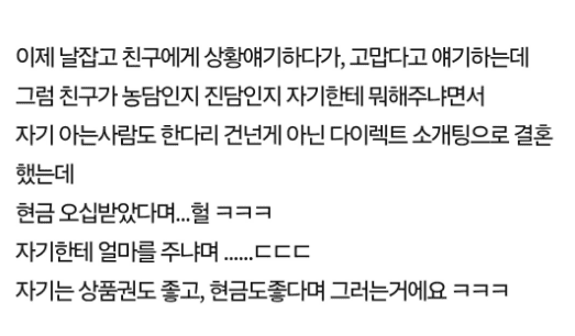 결혼 성사로 현금 달라는 어이없는 친구..