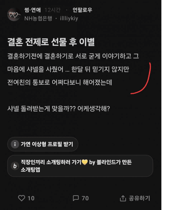 결혼 전제로 샤넬 선물해줬는데 이별통보 당했어..