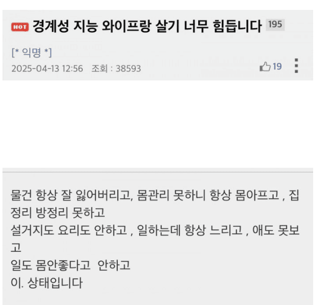 경계성 지능 와이프랑 살기 힘들다는 남편..