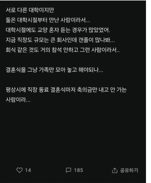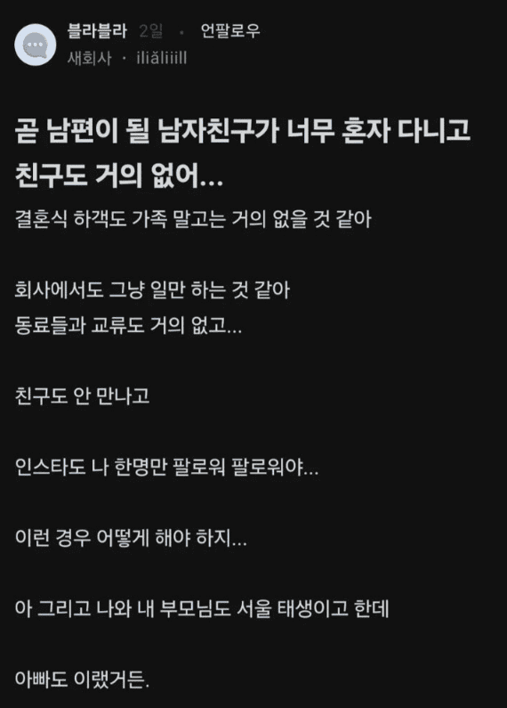 곧 결혼하는데 남친이 친구가 거의 없어..