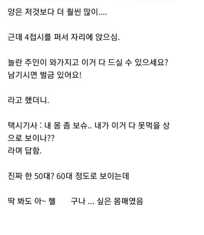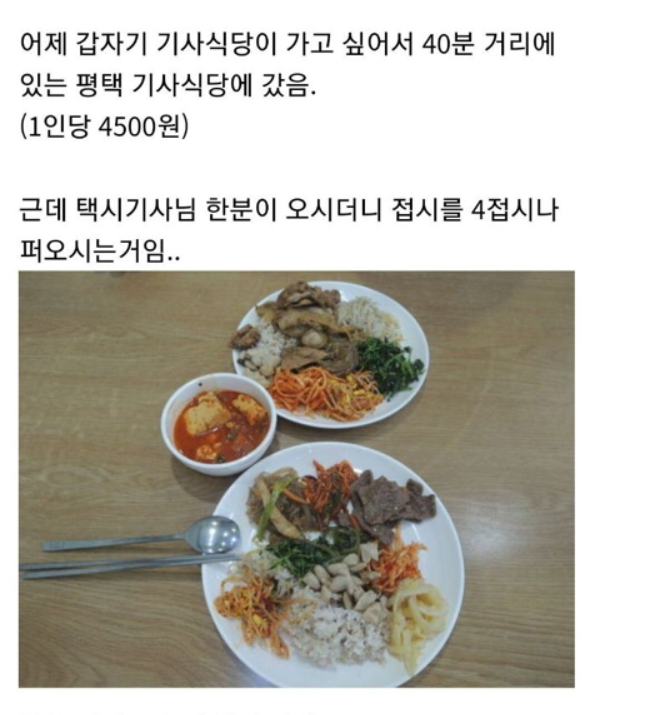 기사식당가서 4접시 가득 퍼오신 택시기사님..