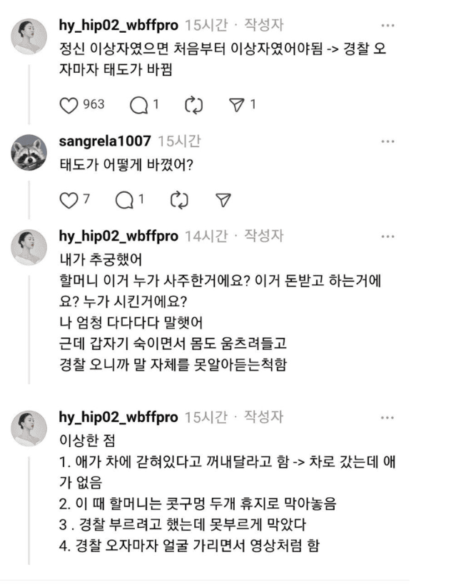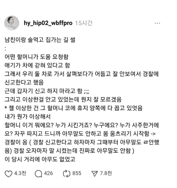 길거리 차 앞에서 도와달라는 할머니를 112에 신고한 이유..