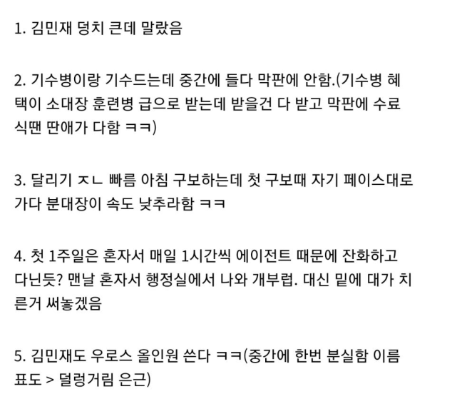 김민재 훈련소 동기 실화 썰..ㄷㄷ