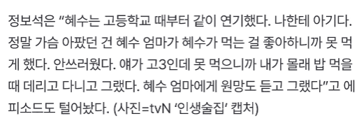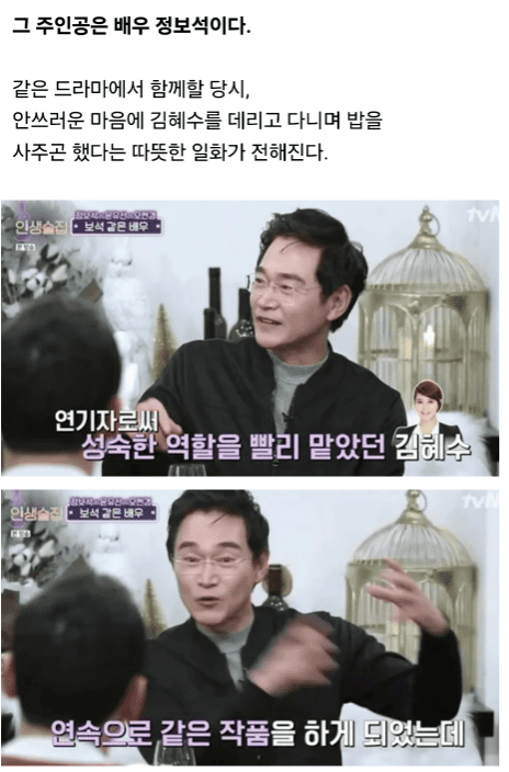 김혜수가 못먹고 다닐때 유일하게 밥 사준 배우..