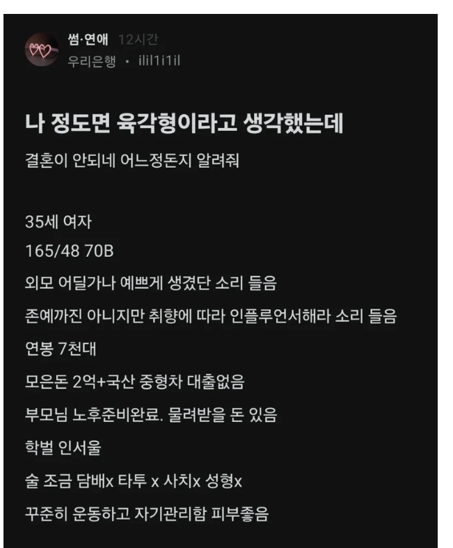 나 정도면 육각형인데 결혼이 힘들다는 고민녀..