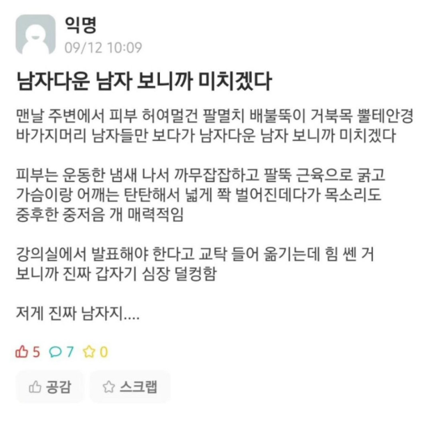 남자다운 남자를 보고 ㅁㅊ겠다는 사람..ㄷㄷ