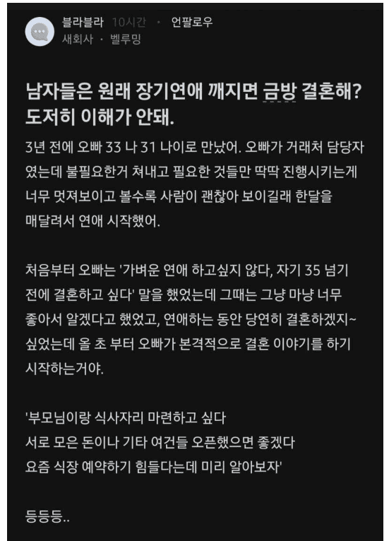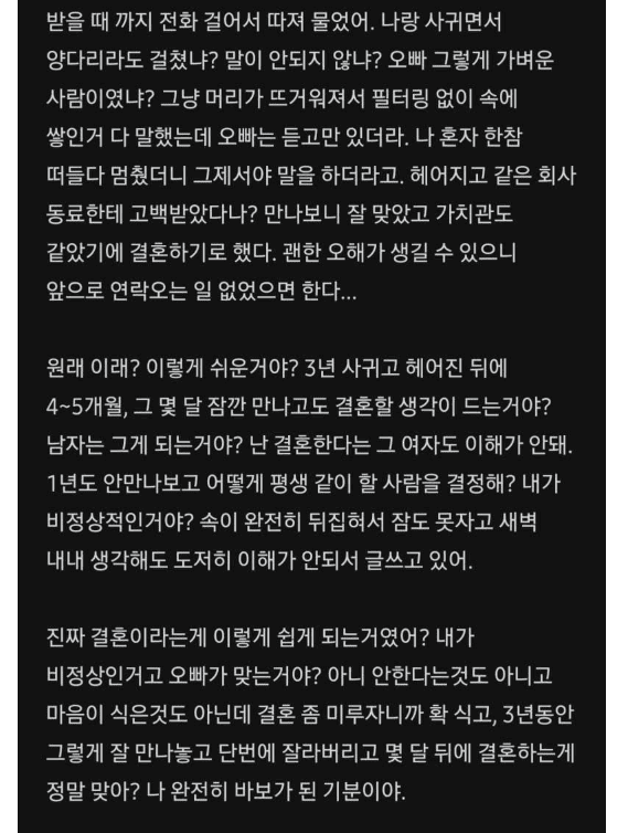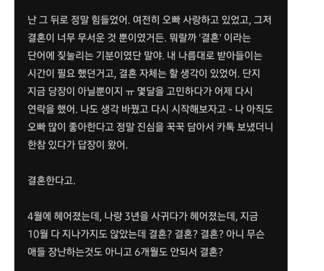 남자들은 원래 장기연애하다 헤어지면 금방 결혼해?