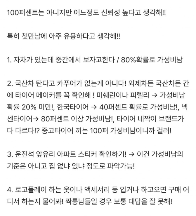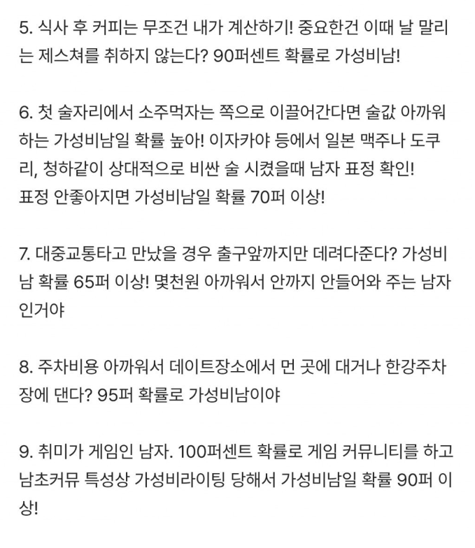 남자 꽤나 만나본 인생의 선배가 알려주는 가성비남 거르는 방법..