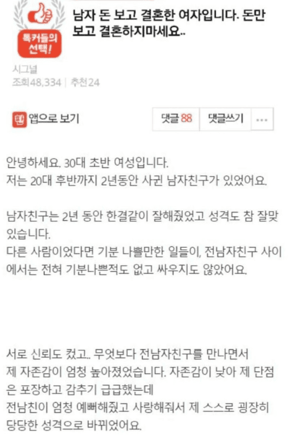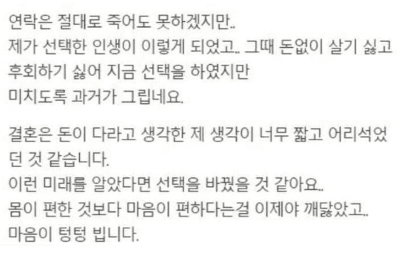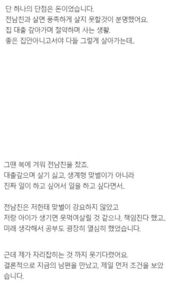 남자 돈 보고 결혼했는데 절대 하지마세요..
