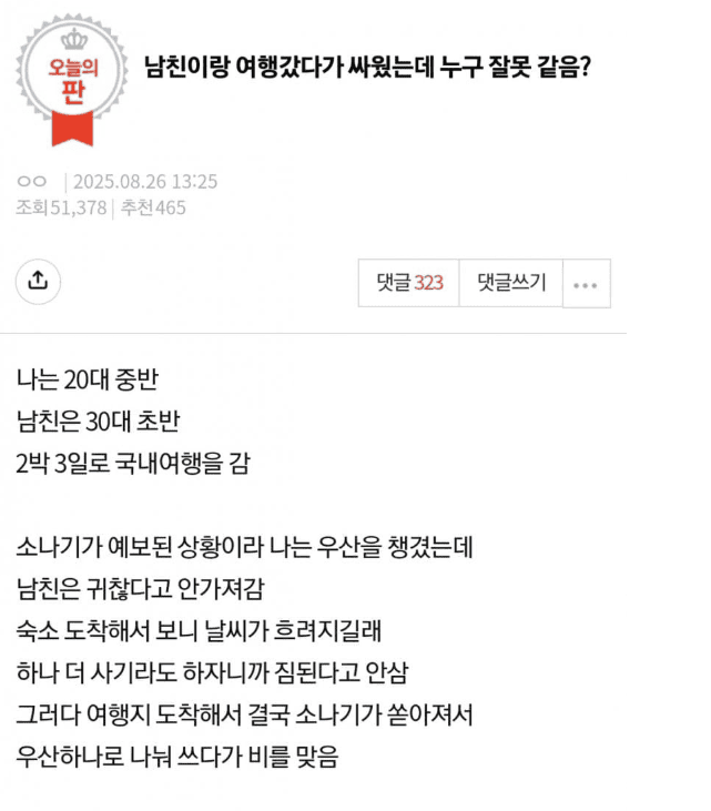 남친이랑 여행가서 ㅆ웠는데 누가잘못한거야?