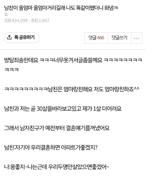 남친이 우리엄마 우리엄마 거리길래 나도 똑같이 해봤음..