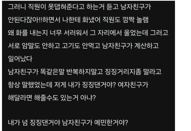 내가 너무 징징거린거야? 남자친구가 예민한거야?