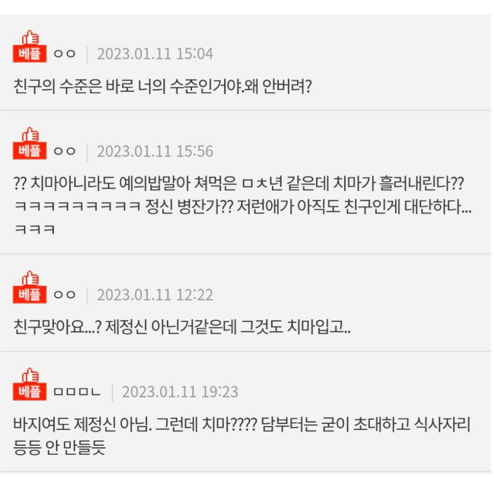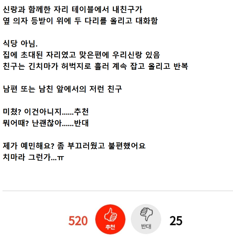 내신랑 앞에서 친구가 취한 자세..