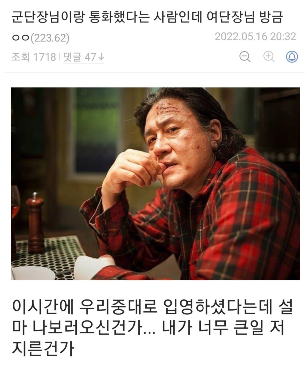 너무 힘들어서 군단장에게 다이렉트 전화한 디시인..