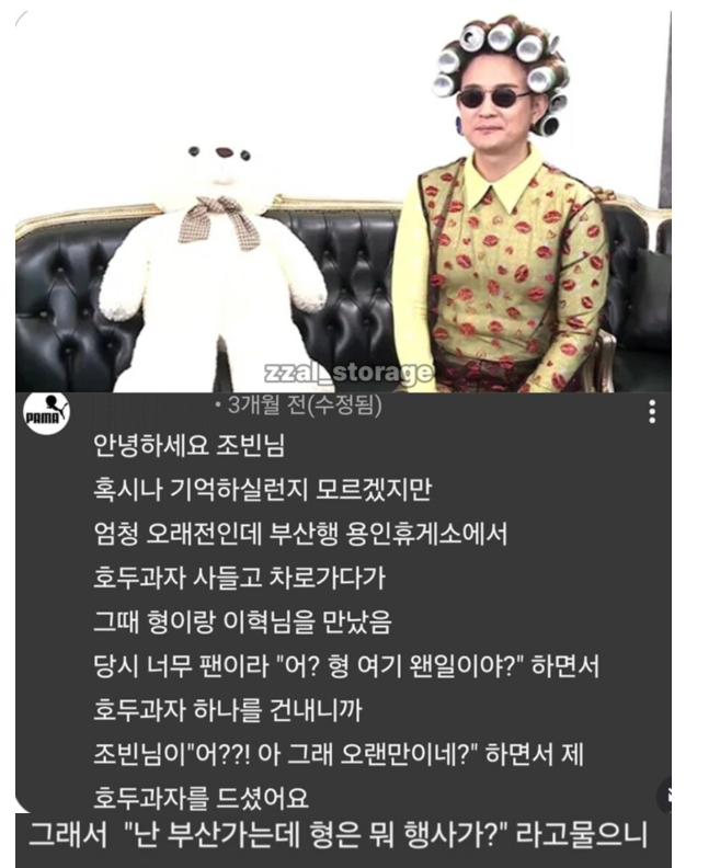 노라조 팬이 휴게소에서 조빈을 만난 썰..