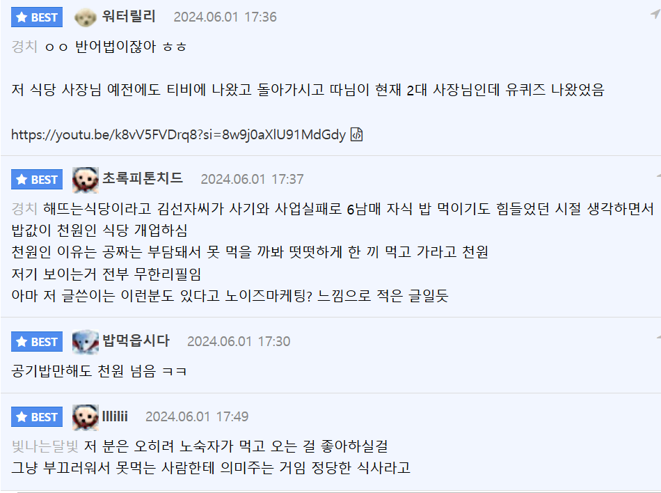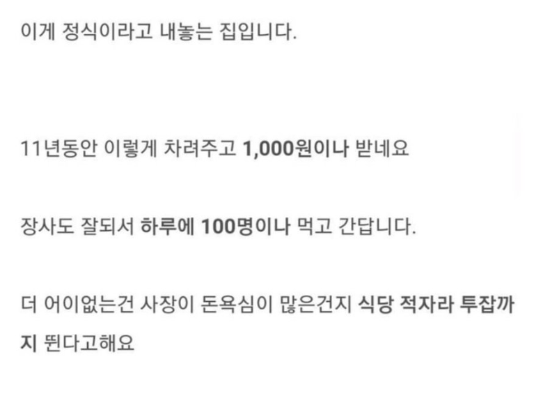 논란의 1,000원 정식 식당…