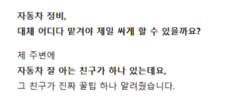 대부분 모르는 자동차 정비 반값에 하는법..