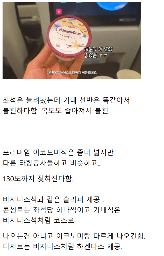 대한항공 1인치 줄였다는 이코노미석 후기..