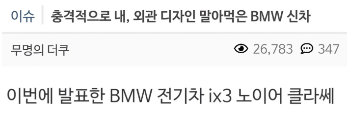 디자인 충격적이라는 신형 BMW 전기차 ix3 노이어 클라쎄..