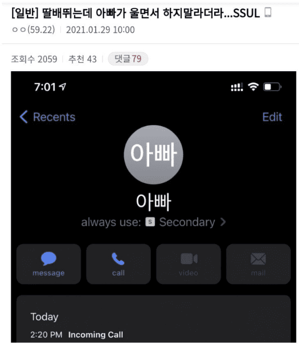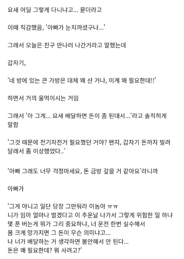 딸ㅂ뛰고있는데 아빠가 울면서 하지말라더라..