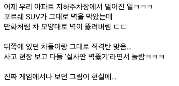 만화에서만 보던 차 모양의 구멍 실사판..ㄷㄷ