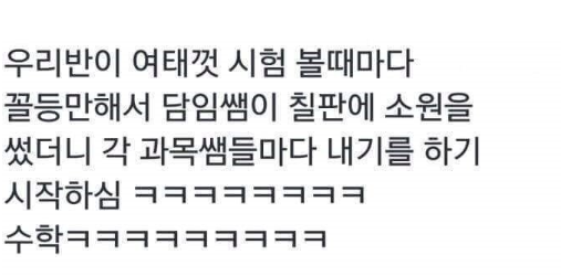 매번 꼴등만 하던 우리반 담임선생님의 시험공약..
