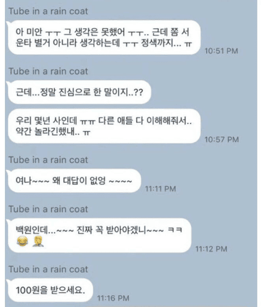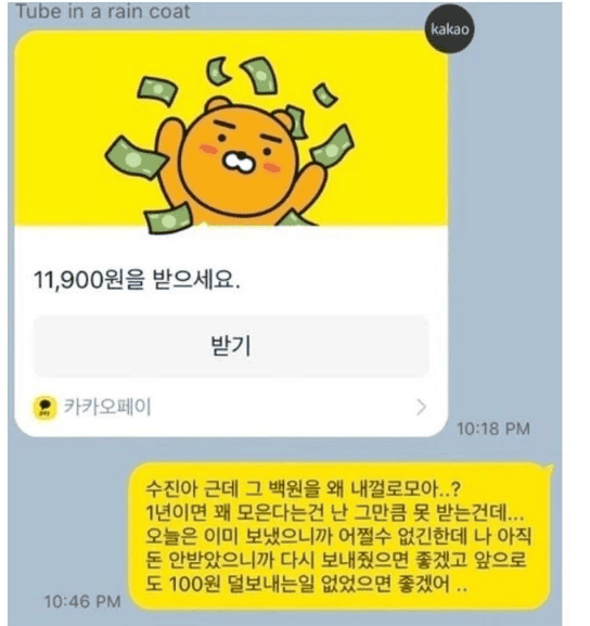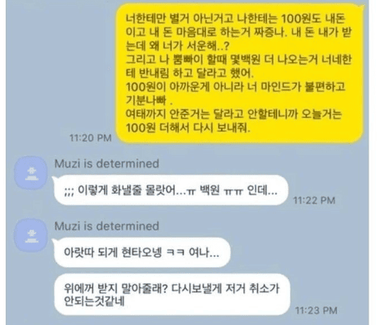 매번 돈 보낼때 100원씩 덜 보내는 친구..