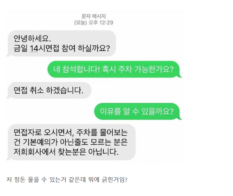 면접가는데 주차되냐고 물어봤다가 취소당함..