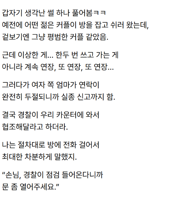 모텔 알바중에 겪었던 레전드 썰..ㄷㄷ
