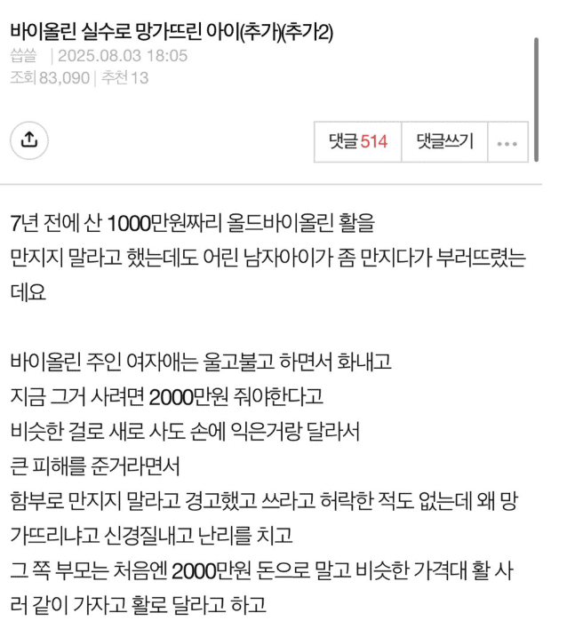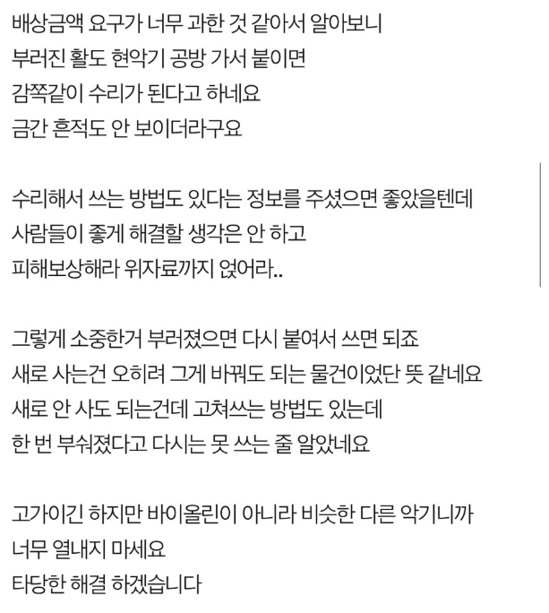 바이올린 활 부러트린 아이..(+엄마 글)