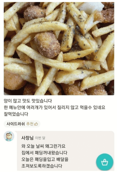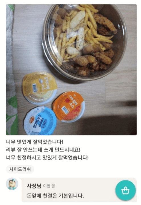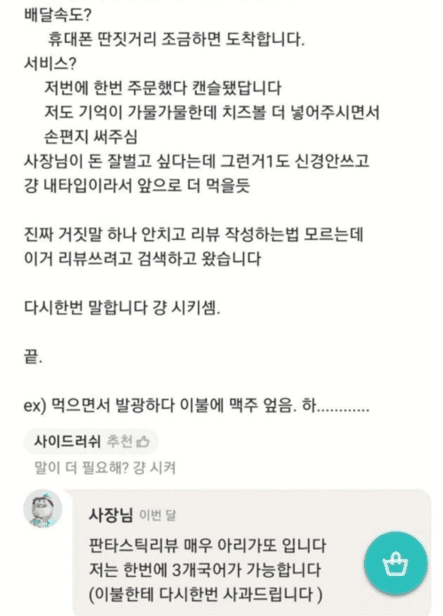 배민 리뷰 답글에 일기쓴다는 사장님..