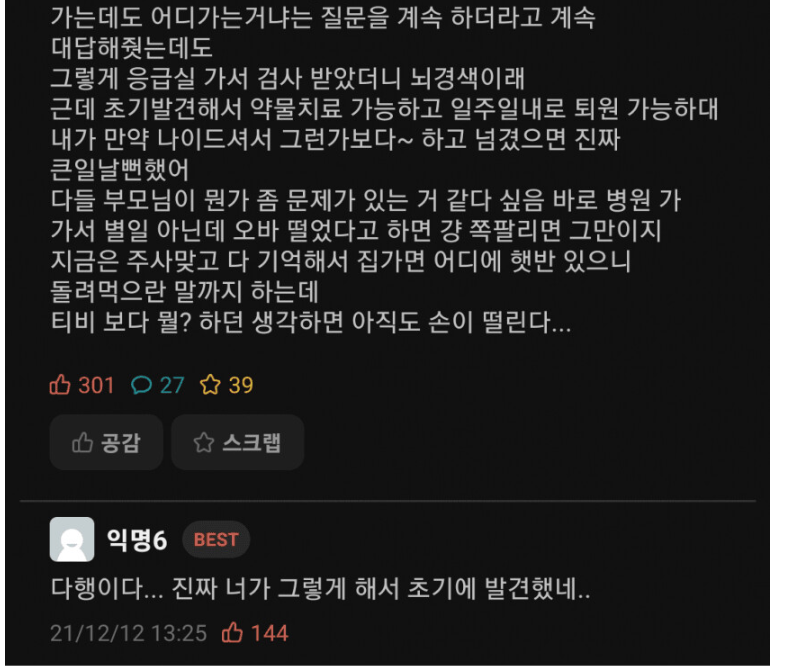 부모님이 뭔가 이상하다 싶으면 바로 병원가..