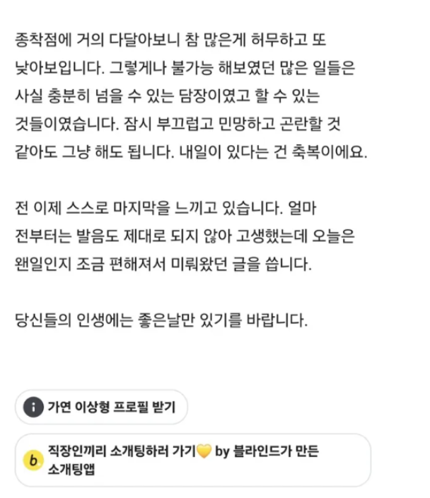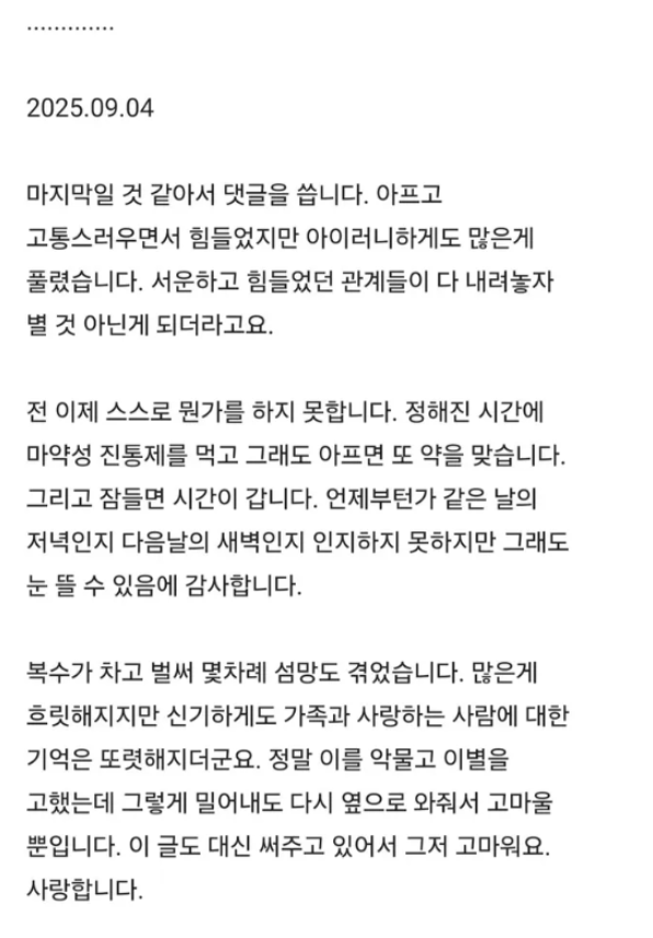 블라에 올라온 췌장암 4기 환자 마지막 글..