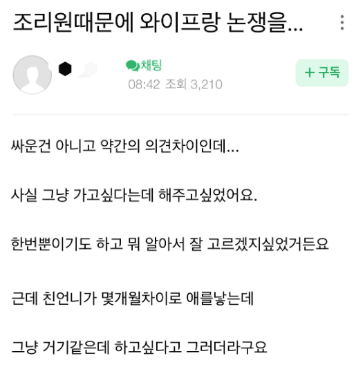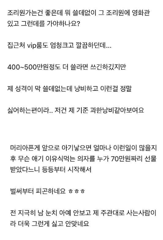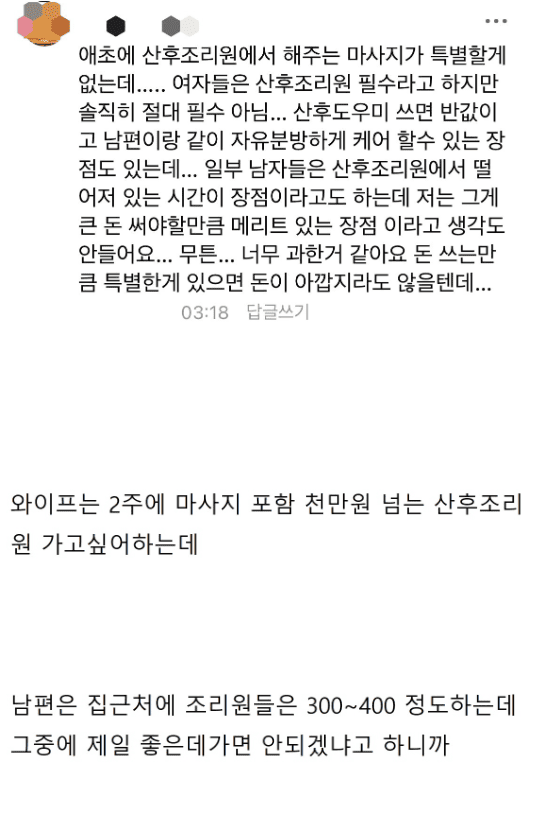 산후조리원 때문에 현타온 남편..