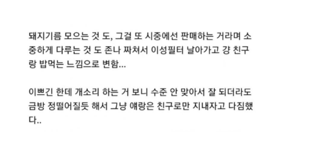 삼겹살 기름으로 썸녀한테 정 털린 남자..