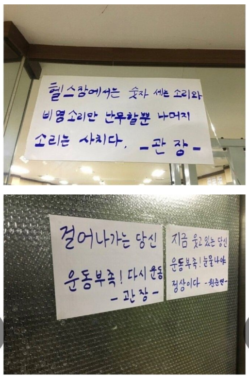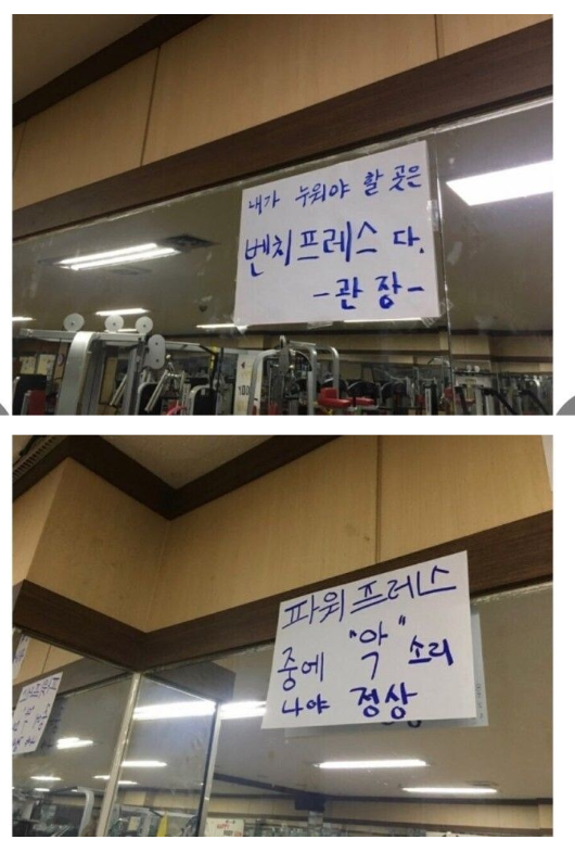상남자 만의 헬스장 안내문..
