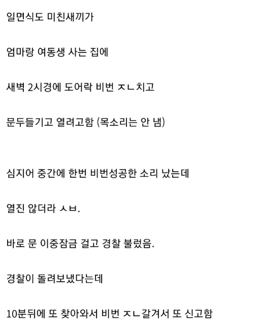 새벽에 어떤 남자가 도어락 뜯으려함..