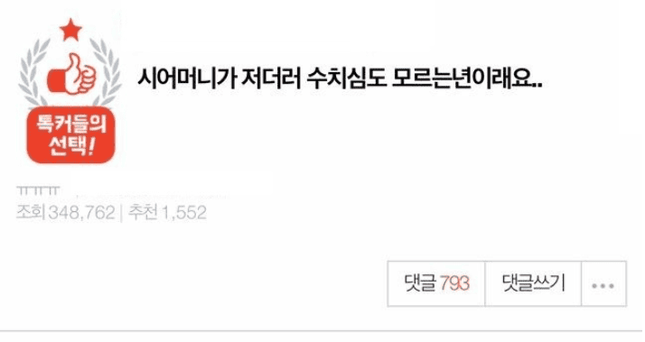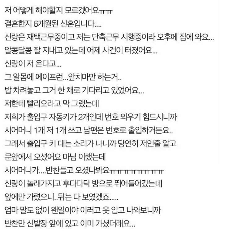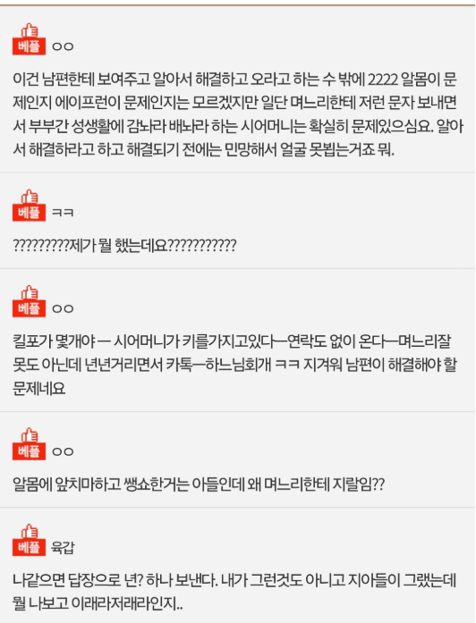 시어머니가 저보고 수치심도 모르는ㄴ이래요..