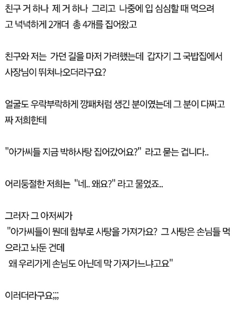 식당 카운터에 있는 사탕 먹은게 잘못인가요..