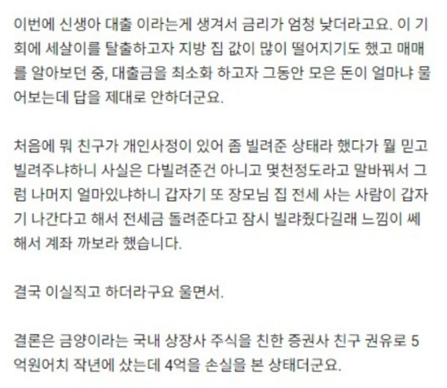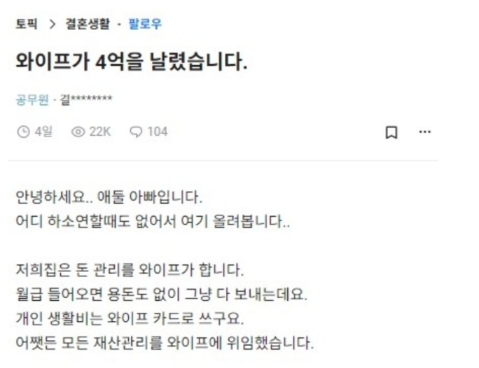 아내가 4억을 날렸습니다..