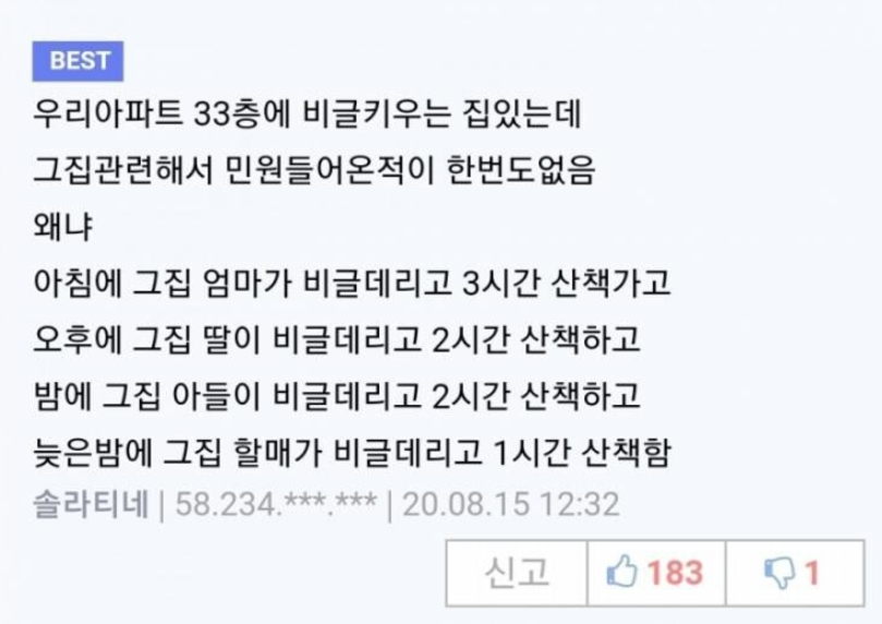 아파트에서 소음피해 없이 비글 키우는 방법..