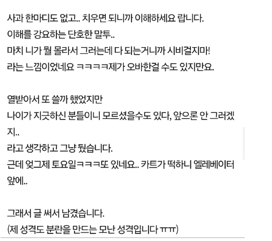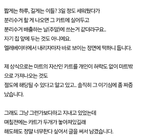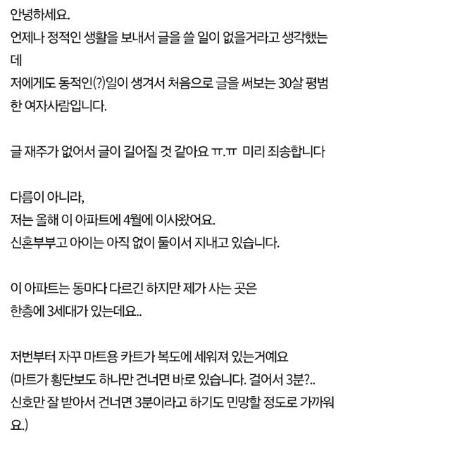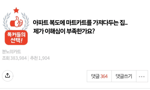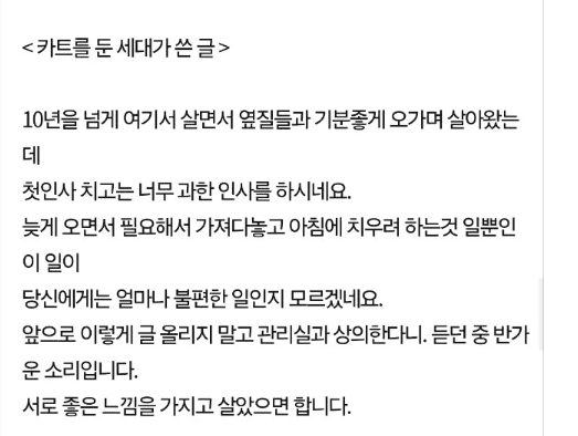 아파트 복도에 카트를 갖다놓은 집..