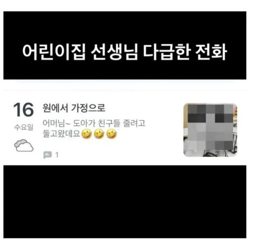 어린이집 선생님의 다급한 전화..ㄷㄷ