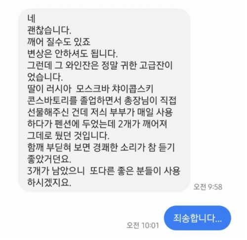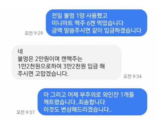 에어비엔비 이용중 와인잔 깨트리고 사장님한테 받은 문자..