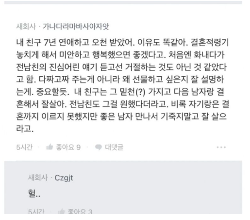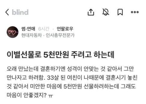 여자친구한테 이별선물로 5천만원 해주려고 하는데..